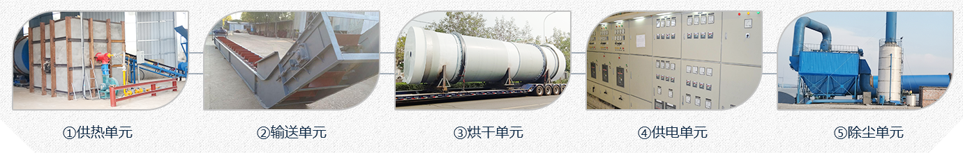 鼎力褐煤烘干機(jī)主要由熱源、喂料裝置、帶式上料機(jī)、回轉(zhuǎn)滾筒、帶式出料機(jī)、引風(fēng)機(jī)、除塵器和配電柜構(gòu)成。